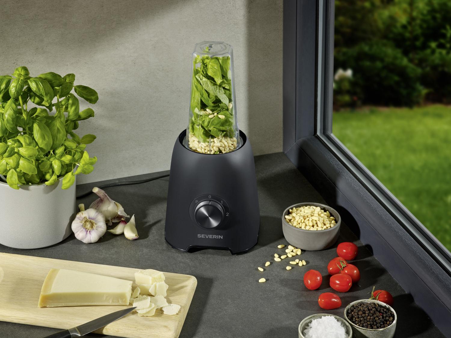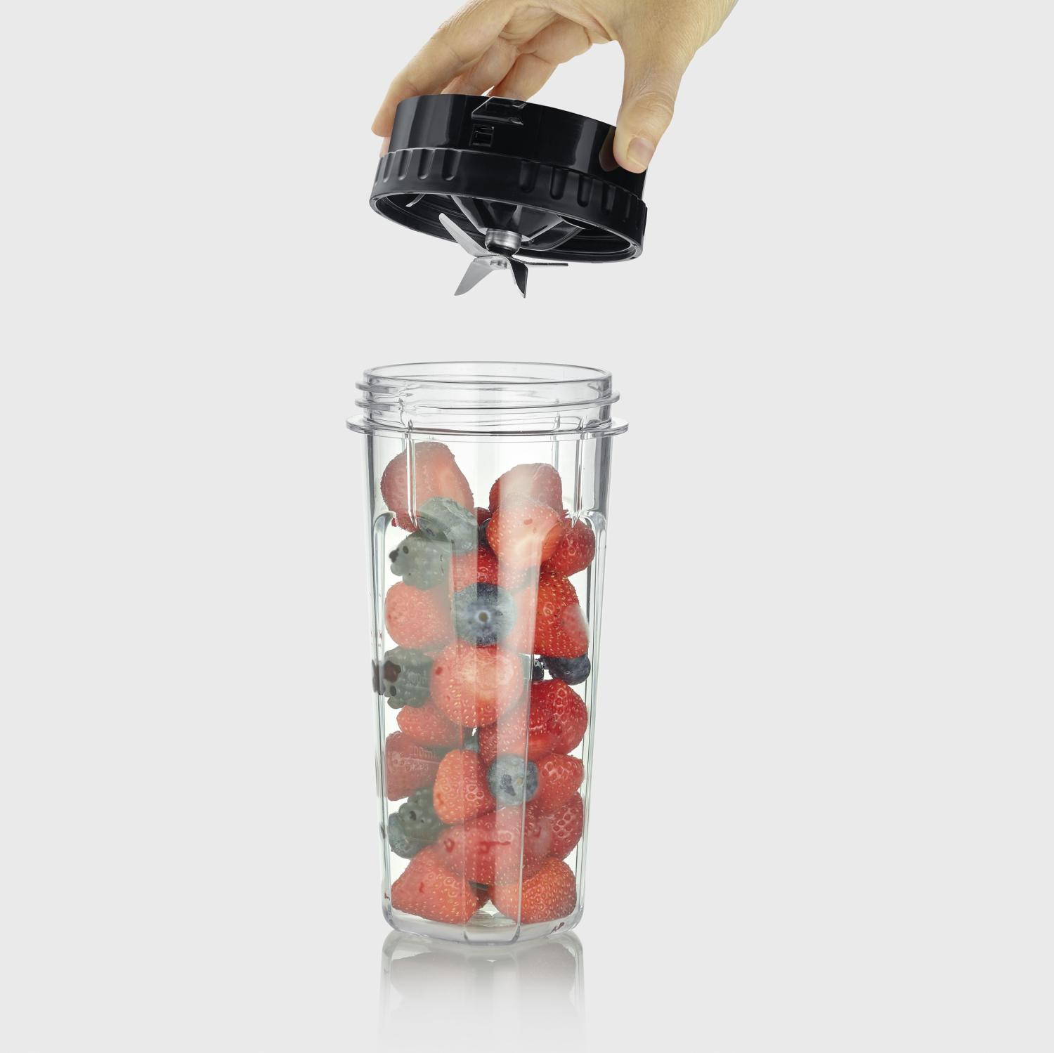 För extra mångsidighet ingår en smoothieblender och en hackare i robust Tritan och plast, vilket gör apparaten perfekt även för mindre portioner. Hackaren är idealisk för nötter, örter och grönsaker, medan smoothiebehållaren med läckagesäkert drickslock gör det enkelt att ta med din dryck när du är på språng. Det gör denna blender till ett utmärkt val för en aktiv livsstil.