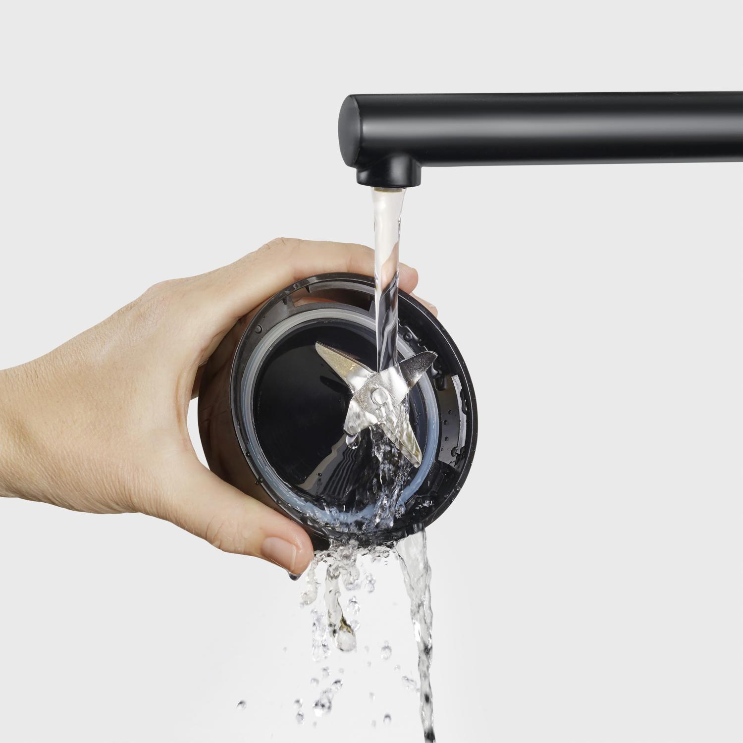 Rengöringen är smidig och tidsbesparande. De avtagbara bladen i rostfritt stål samt behållare och lock tål maskindisk, vilket gör att du snabbt får allt rent och redo för nästa användning. Den kompakta designen gör dessutom att blendern tar minimalt med plats i köket.