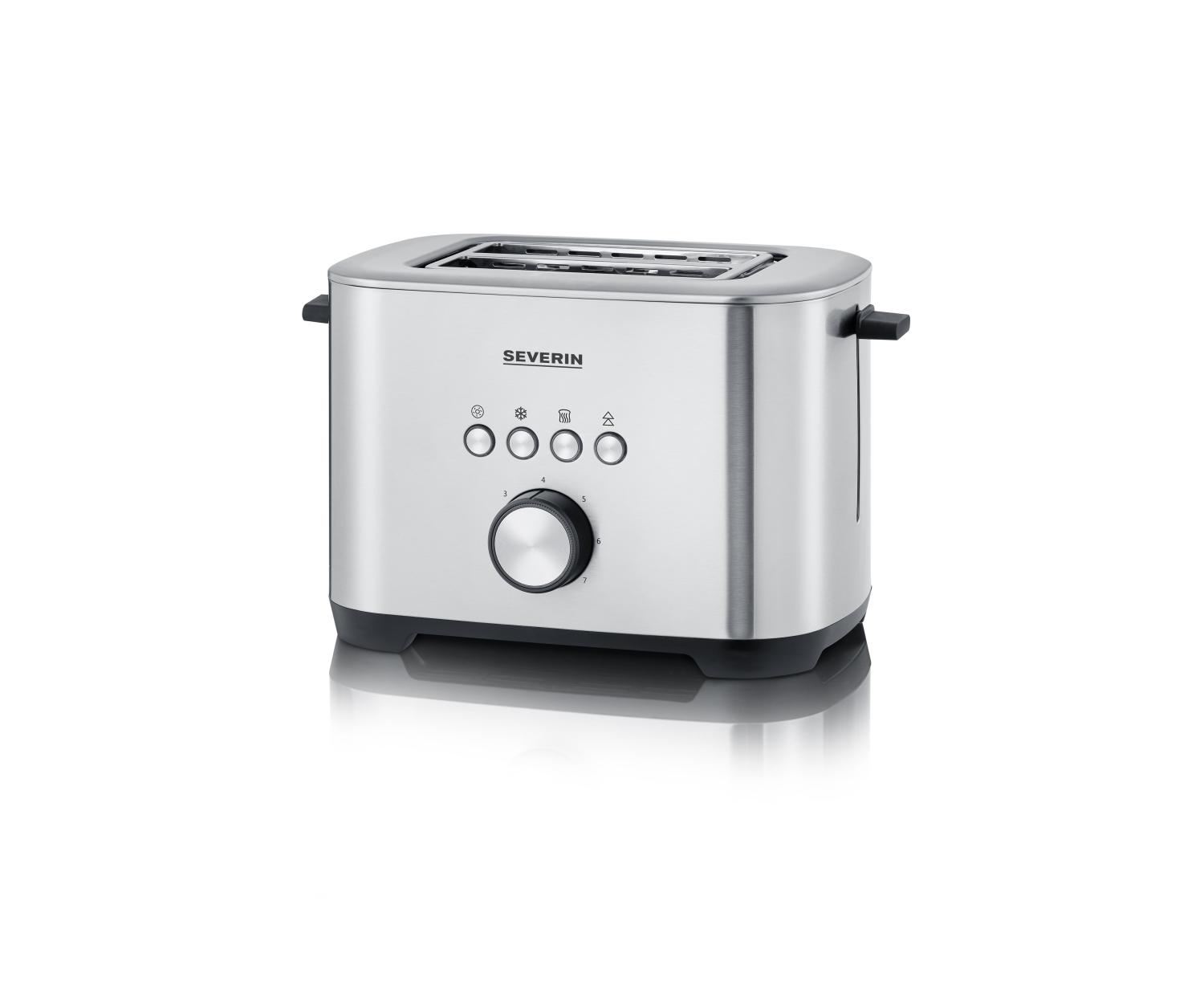 Brödrost i Severins unika design erbjuder plats för två skivor. Med extra breda rostfack möjliggörs rostning av även bredare skivor såsom limpa eller bagel. Denna brödrost imponerar med sina smarta funktioner såsom kalla sidor och smulfack, vilket gör den till en praktisk och användarvänlig köksapparat.