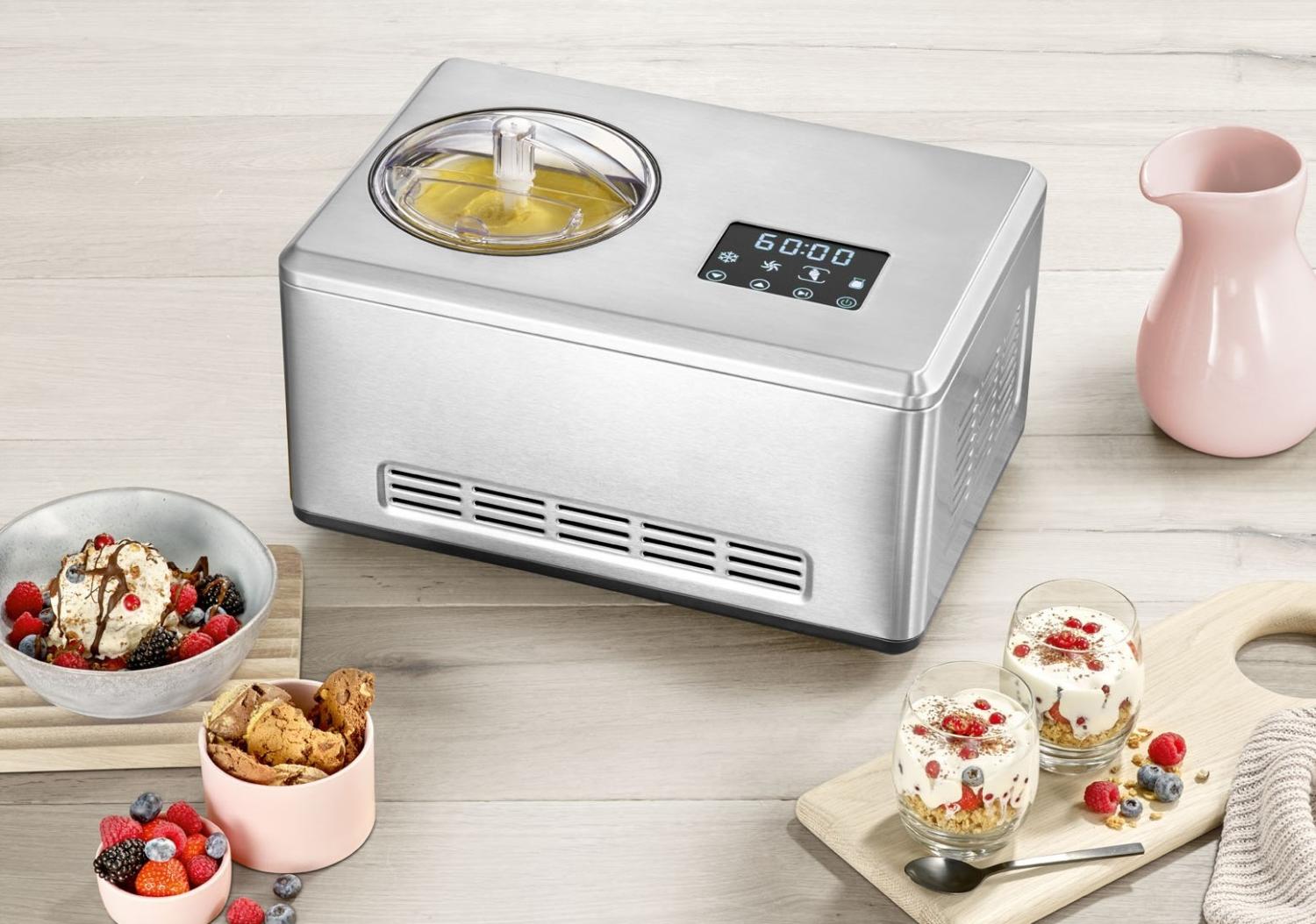 Glassmaskin med inbyggd kompressor för att skapa läcker hemmagjord glass på ett enkelt sätt. Med en generös kapacitet på 2 liter behöver du inte längre frysa bunkarna i förväg - din glass är färdig på mindre än 30 minuter från start till servering. Upplev den genuina smaken av italiensk gelato direkt hemma. Utforska en värld av smaker genom att blanda dina favoritingredienser och använda högkvalitativa råvaror för att skapa unika smakkombinationer.