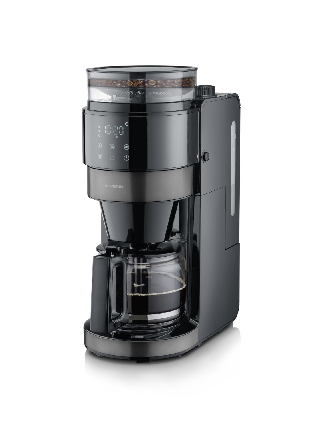Färskmalet bryggkaffe från vår kaffebryggare med kvarn i trendig Dark Inox design
