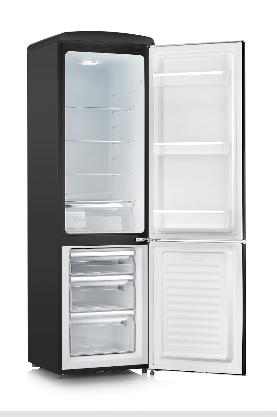 En kyl/fryskombination med en höjd på 181 cm och en bredd på 55 cm erbjuder en total kapacitet på 244 liter, uppdelat i 181 liter för kylen och 63 liter för frysen. Den har energiklass D, vilket innebär att den är energieffektiv och miljövänlig. Med sitt coola retrodesign blir denna kyl/frys en riktig blickfångare i köket eller varför inte i uterummet. Dess fristående konstruktion gör den till en elegant inredningsdetalj som passar perfekt i vilket rum som helst.