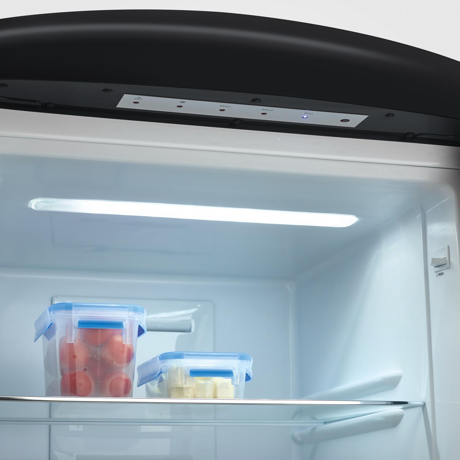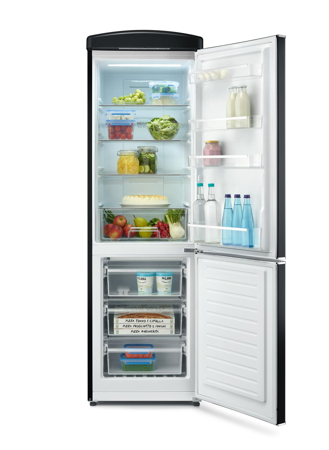 Vår nya modell är utrustad med automatisk avfrostning i frysen, vilket innebär att du slipper fundera på när det är dags att frosta av den. Dessutom har den moderna detaljer såsom energieffektiv LED-belysning och snabb kylning, vilket ger dig bekvämlighet och stil i ett och samma paket.