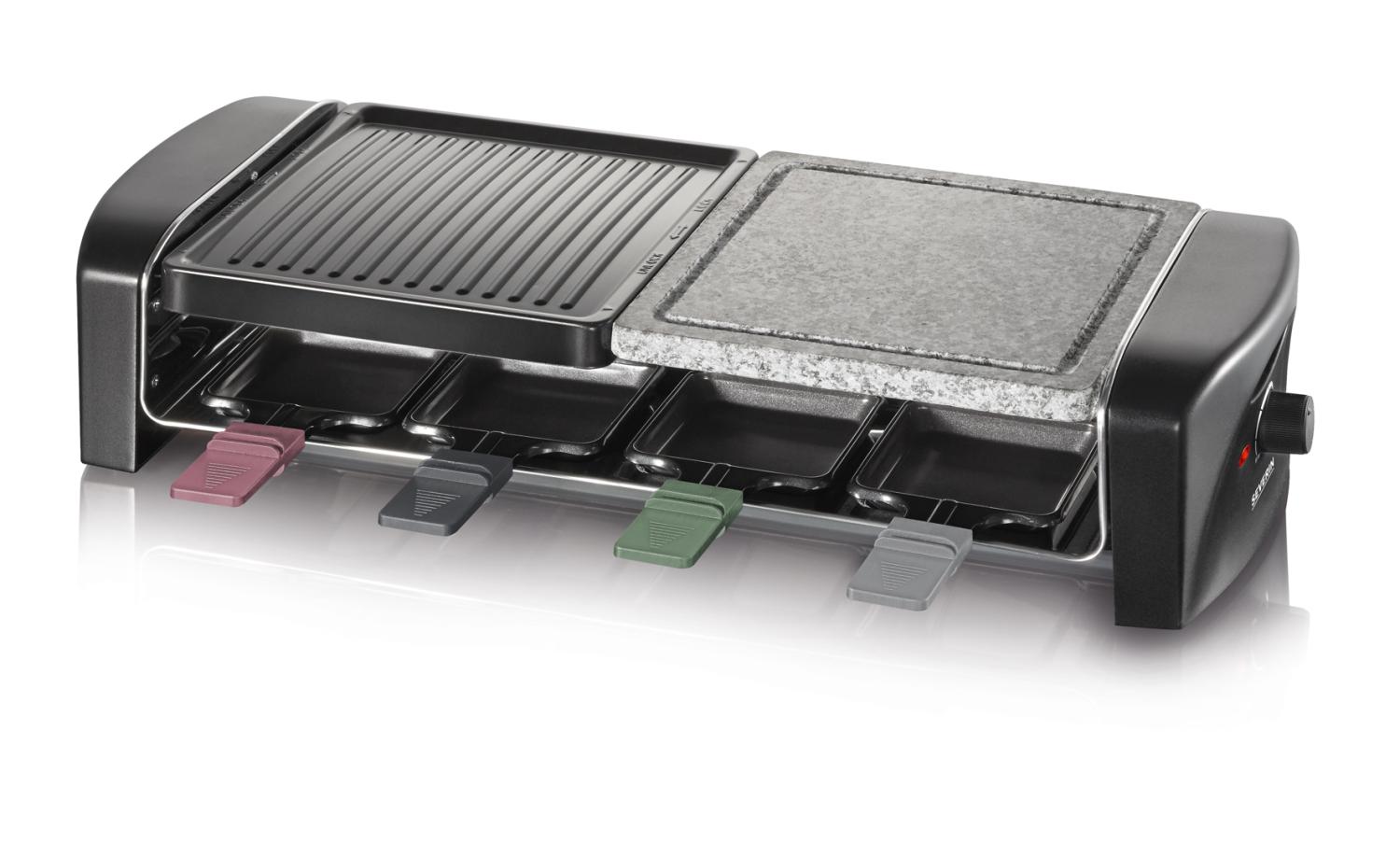 Med raclettegrillen kan du skapa en interaktiv matupplevelse där var och en kan tillaga sina favoriträtter precis som de önskar. Den kombinerade grillytan erbjuder både möjligheten att grilla på natursten för en autentisk smakupplevelse och att använda den non-stick belagda ytan för enkel rengöring och mångsidig matlagning.