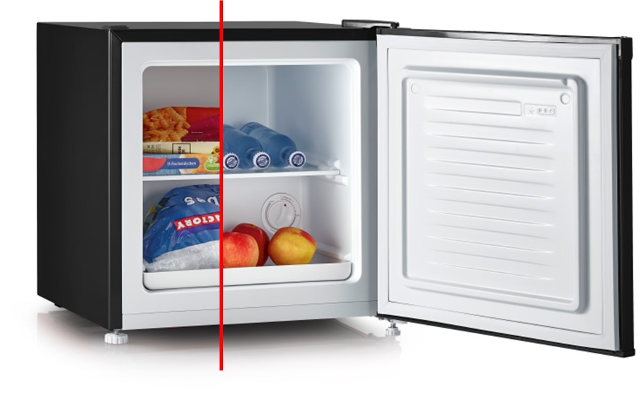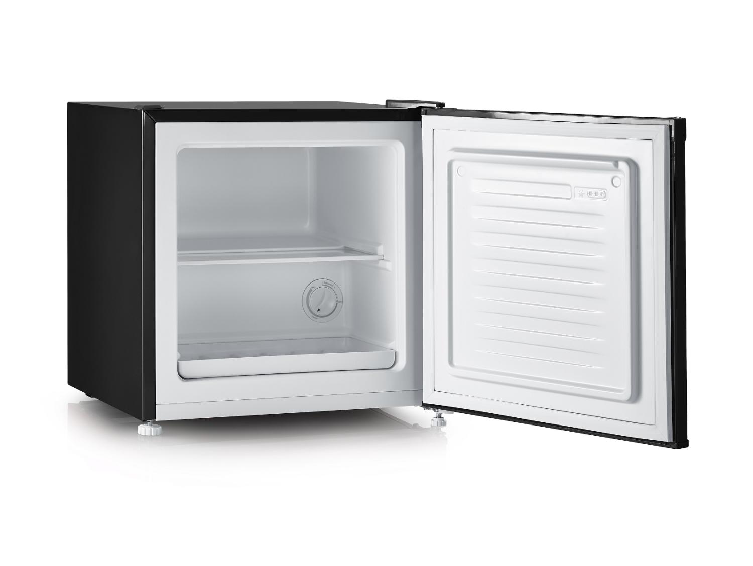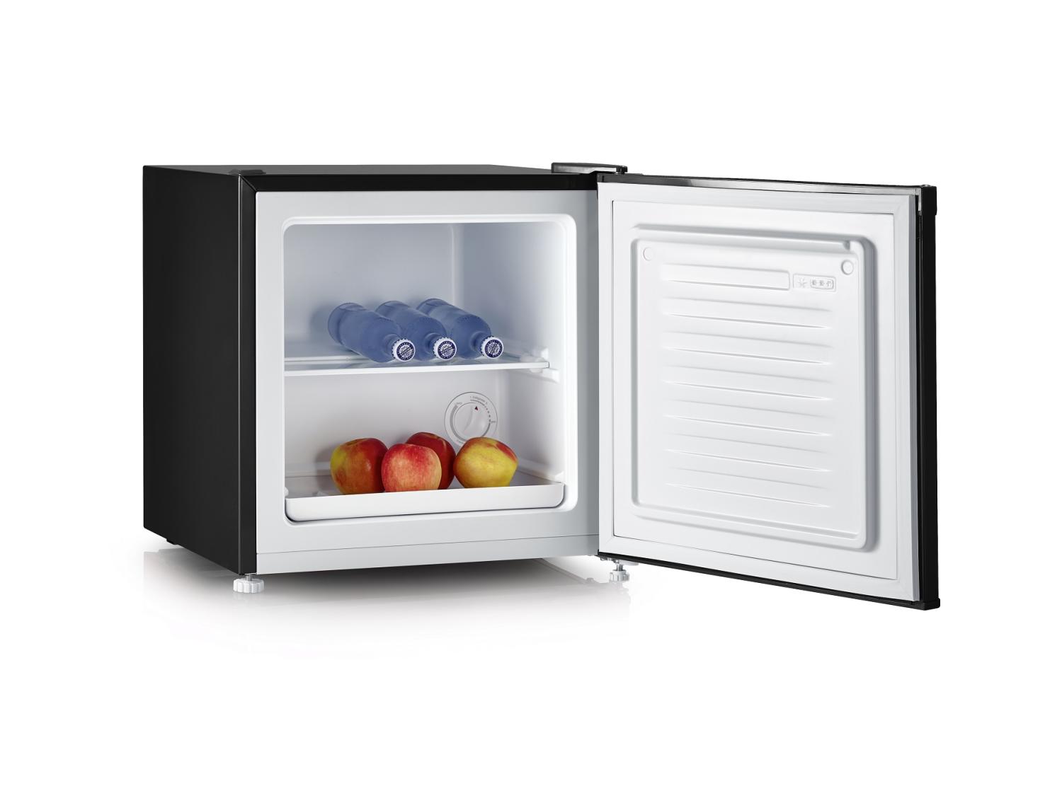 Snyggt svart skåp i retrodesign som kan användas både som kylskåp eller frys. Letar du efter en smartare produkt? Denna mångsidiga enhet är perfekt för kontoret eller studentlägenheten. Beroende på dina behov kan skåpet användas antingen som kyl eller frys. Med en kapacitet på 31 liter och ett hyllplan i mitten erbjuder det gott om utrymme för förvaring. Trots sina imponerande funktioner har skåpet endast en ljudnivå på 41 dB(A) och energiklass E, vilket gör den både effektiv och tystgående.